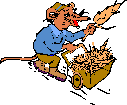 A whiskery, old mouse was coming down the street with a barrow full of wheat.